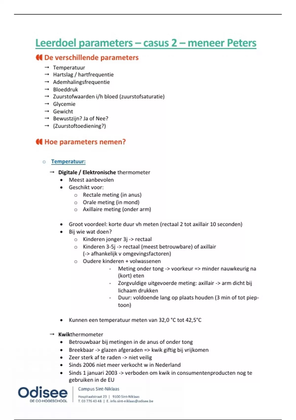 - Meting onder tong -> voorkeur => minder nauwkeurig na