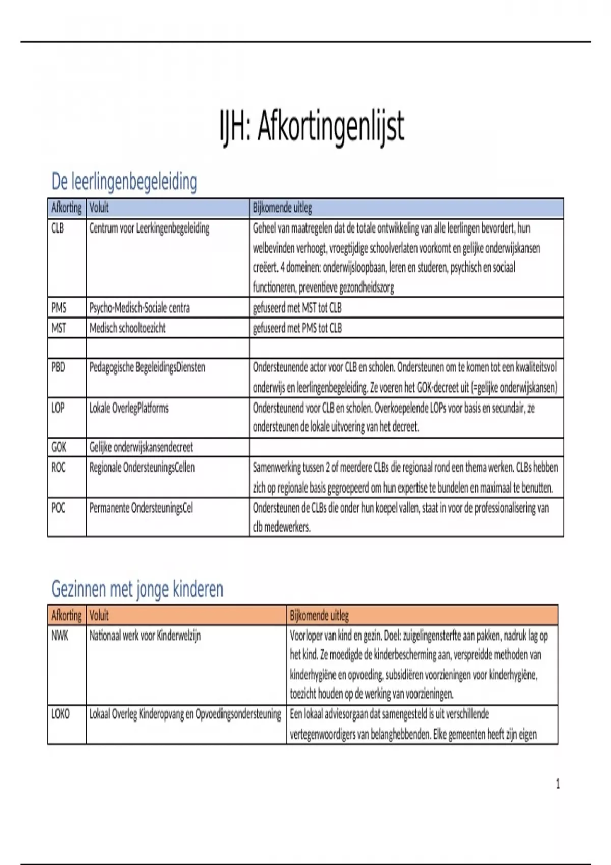 IJH: Afkortingenlijst