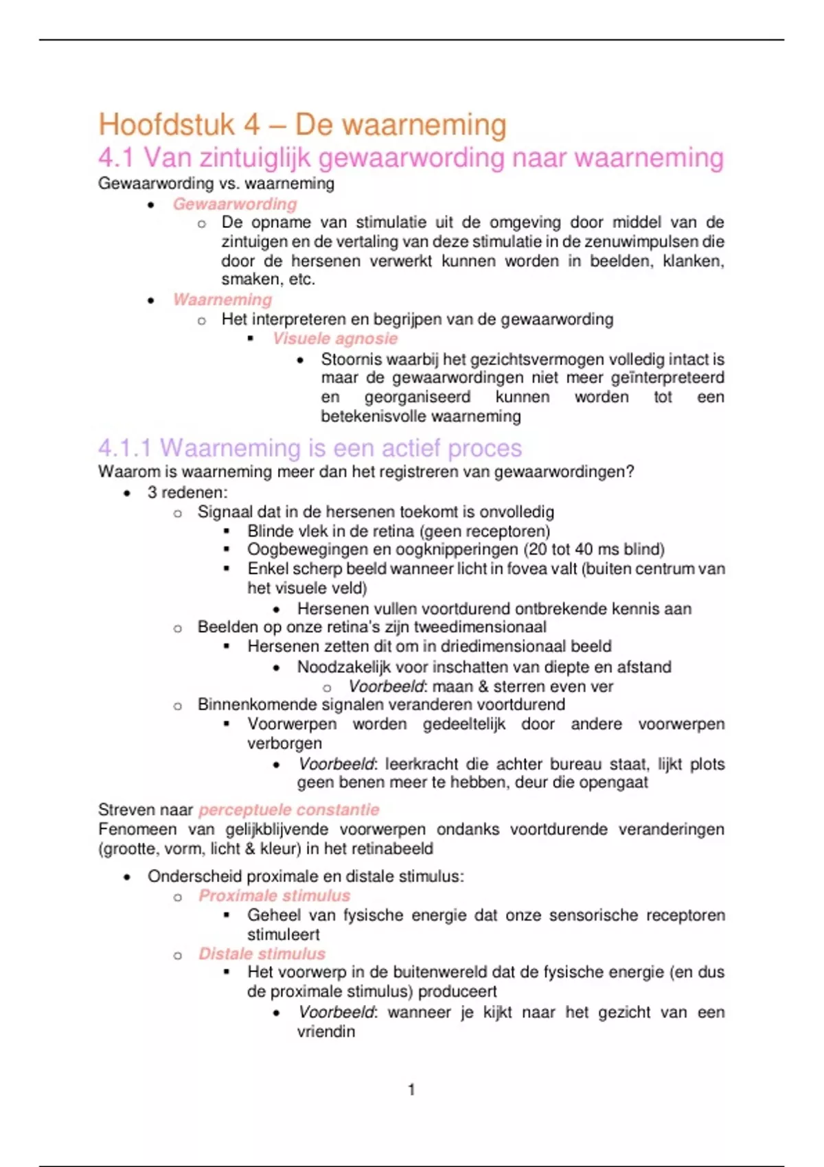 Samenvatting Hoofdstuk 4 algemene psychologie