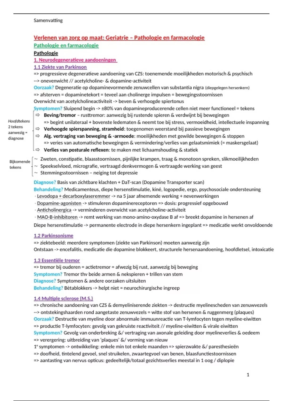 Samenvatting - VZOM: Geriatrie - Pathologie & farmacologie