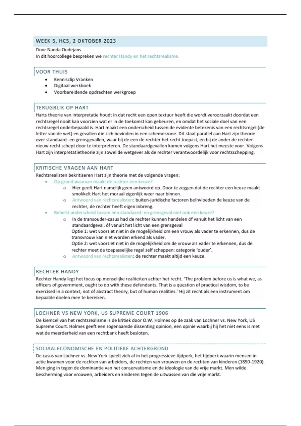 In dit hoorcollege bespreken we rechter Handy en het rechtsrealisme.