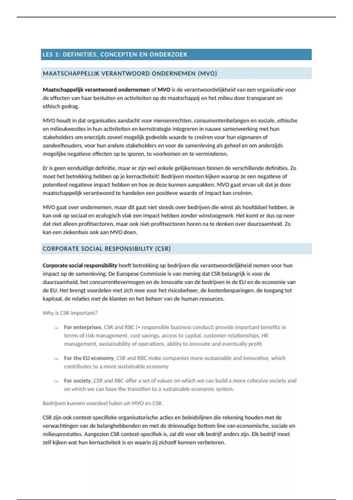 milieuprestaties. Aangezien CSR context-specifiek is, zal dit voor elk bedrijf anders zijn. Elk bedrijf moet