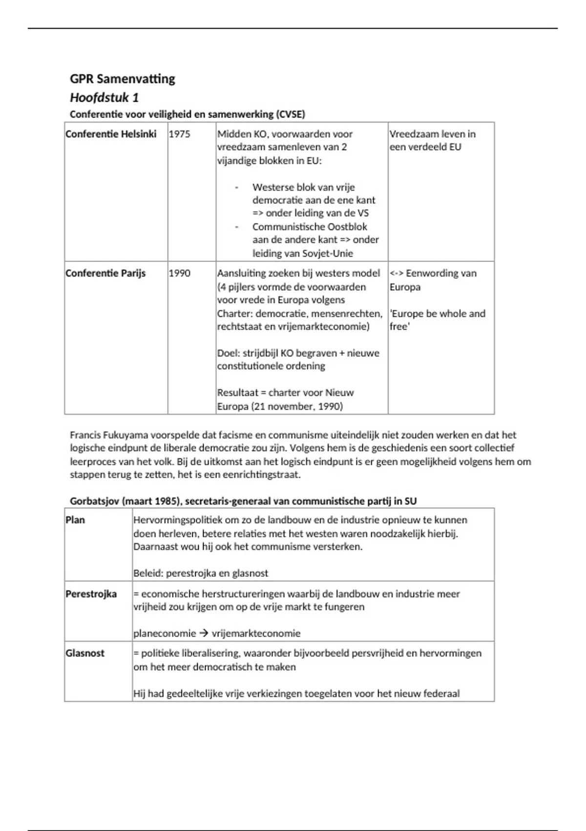 Beknopte samenvatting van de belangrijkste zaken voor het examen