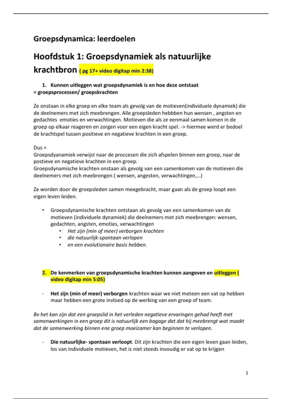 1. Kunnen uitleggen wat groepsdynamiek is en hoe deze ontstaat