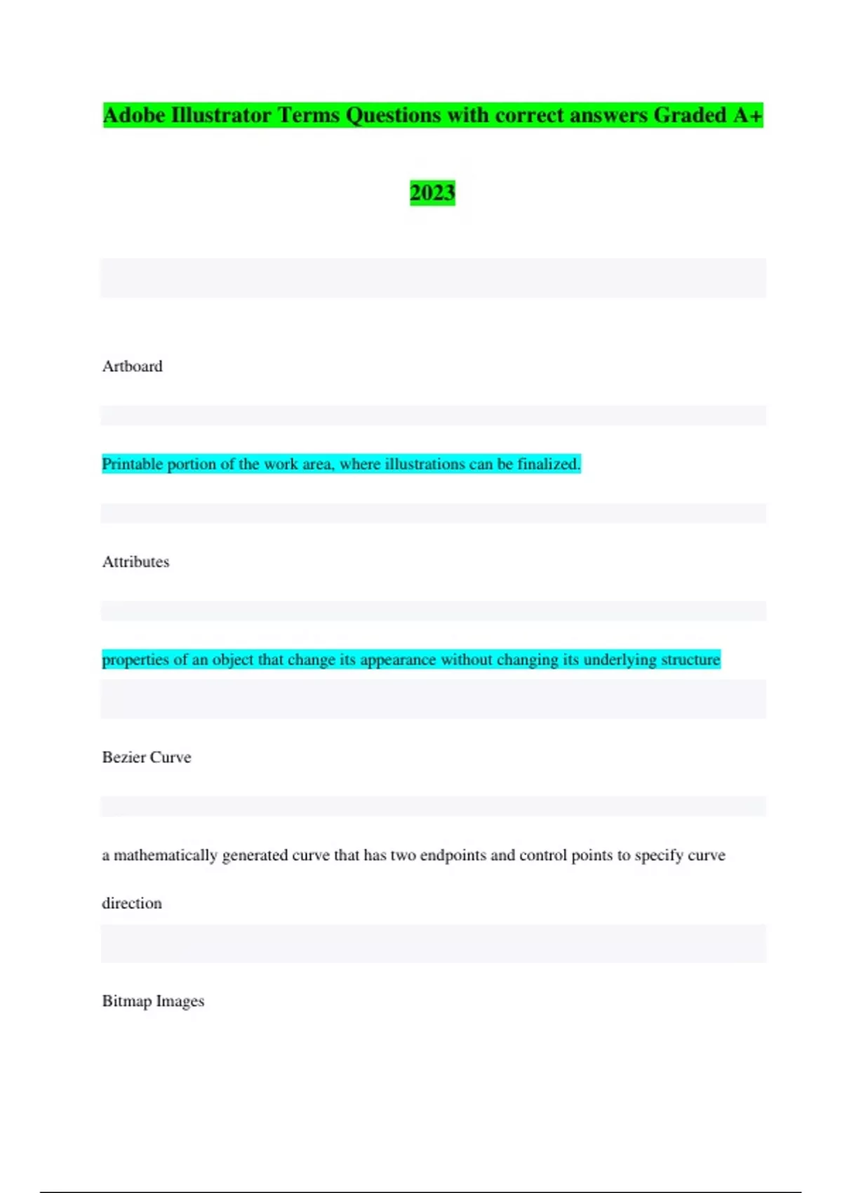 Adobe Illustrator Terms Questions with correct answers Graded A+ 2023