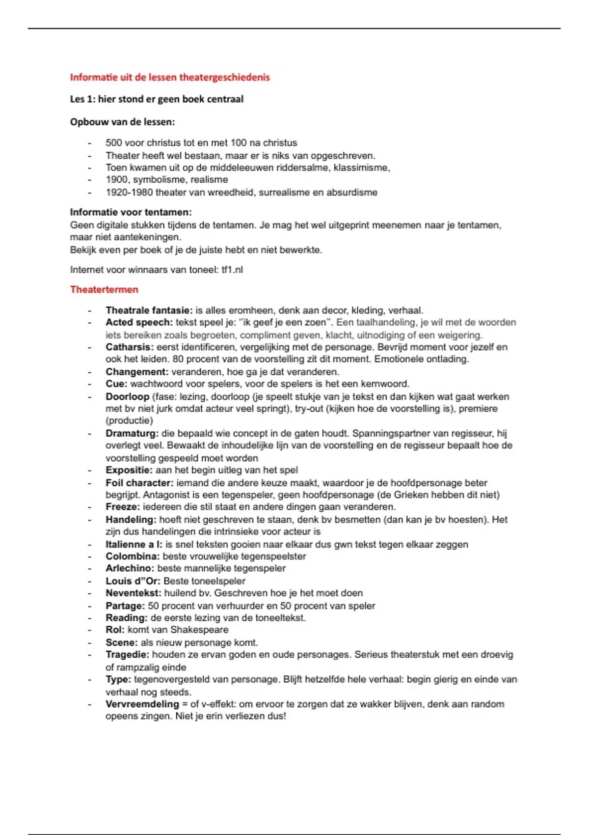 Informatie uit de lessen theatergeschiedenis