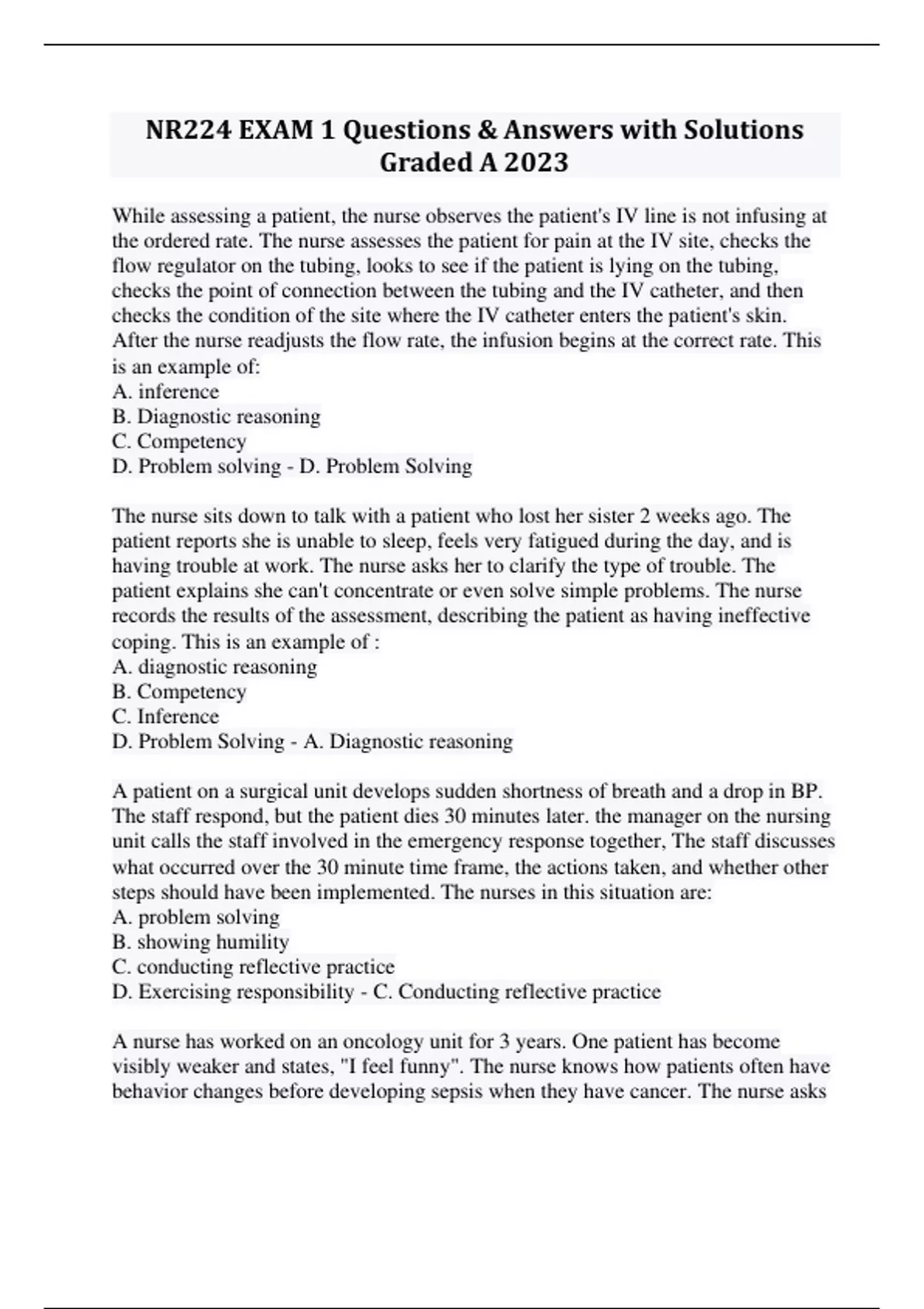 NR224 EXAM 1 Questions & Answers with Solutions Graded A 2023
