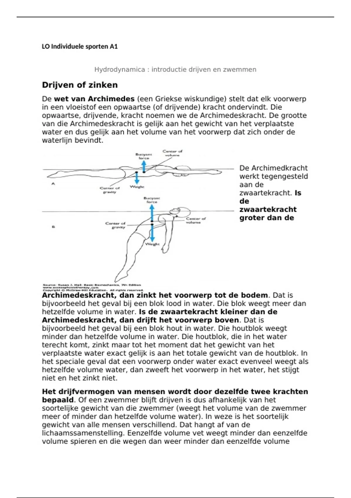 bepaald. Of een zwemmer blijft drijven is dus afhankelijk van het
