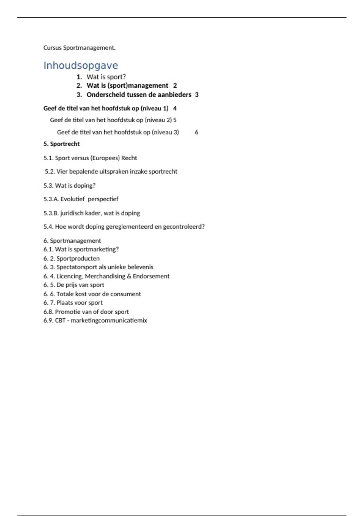 Samenvatting van het vak sportmanagement aan de Karel de Grote Hogeschool.