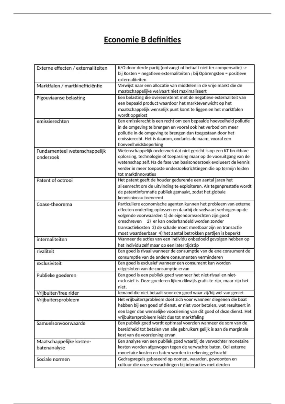 Economie B definities