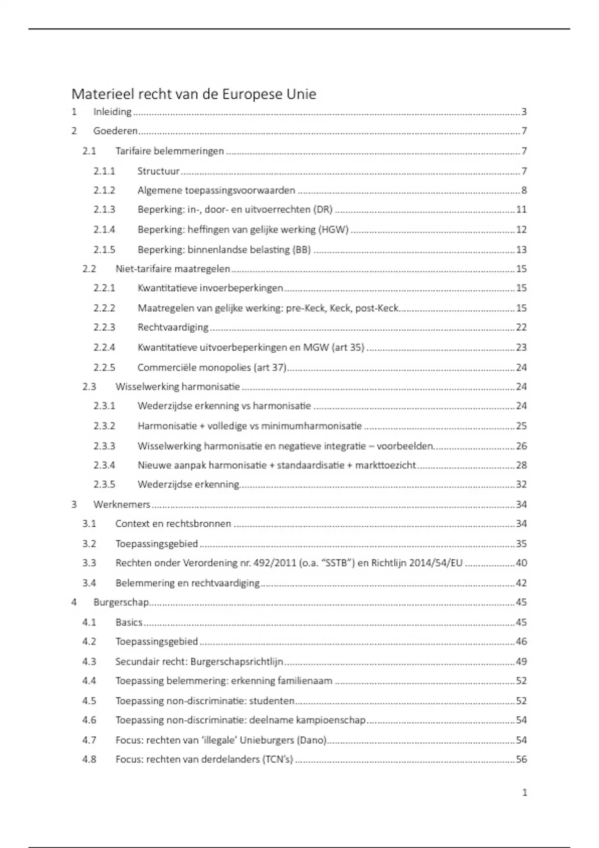Samenvatting voor vak materieel recht van de Europese Unie, gedoceerd aan de KULeuven in de Master rechten. Professor Devroe.