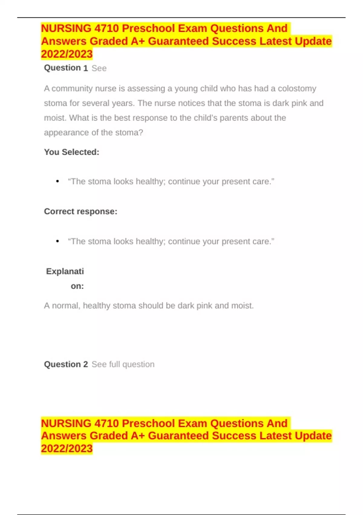 NURSING 4710 Preschool Exam Questions AndAnswers Graded A+ Guaranteed Success Lates