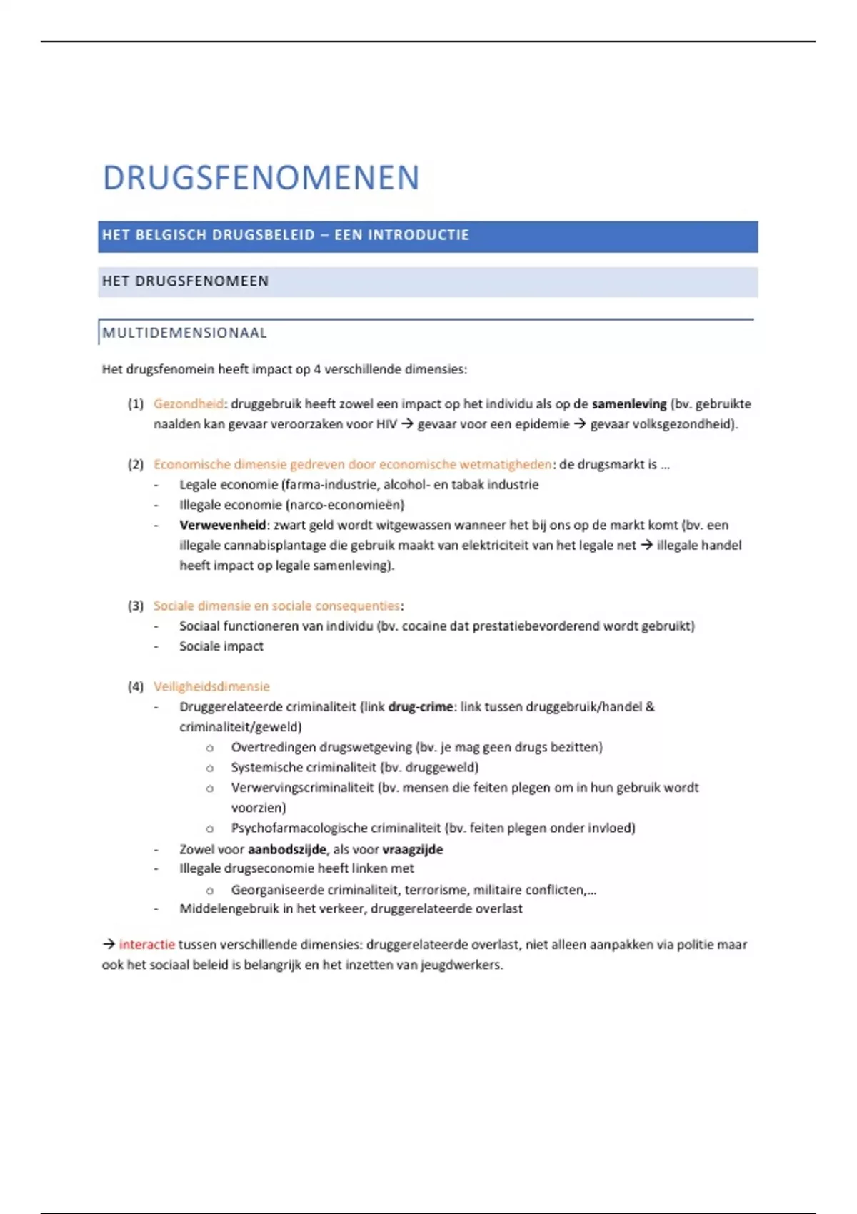 Het drugsfenomein heeft impact op 4 verschillende dimensies: