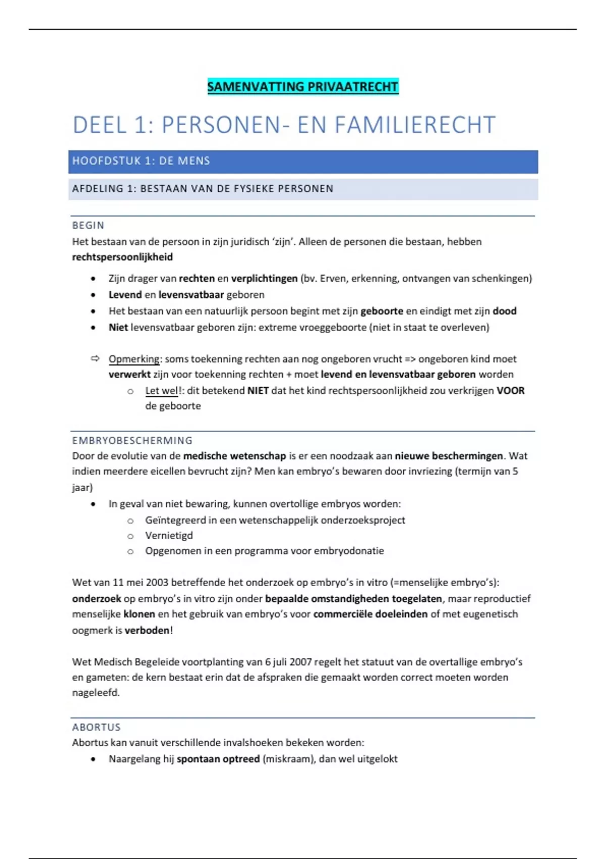 AFDELING 1: BESTAAN VAN DE FYSIEKE PERSONEN