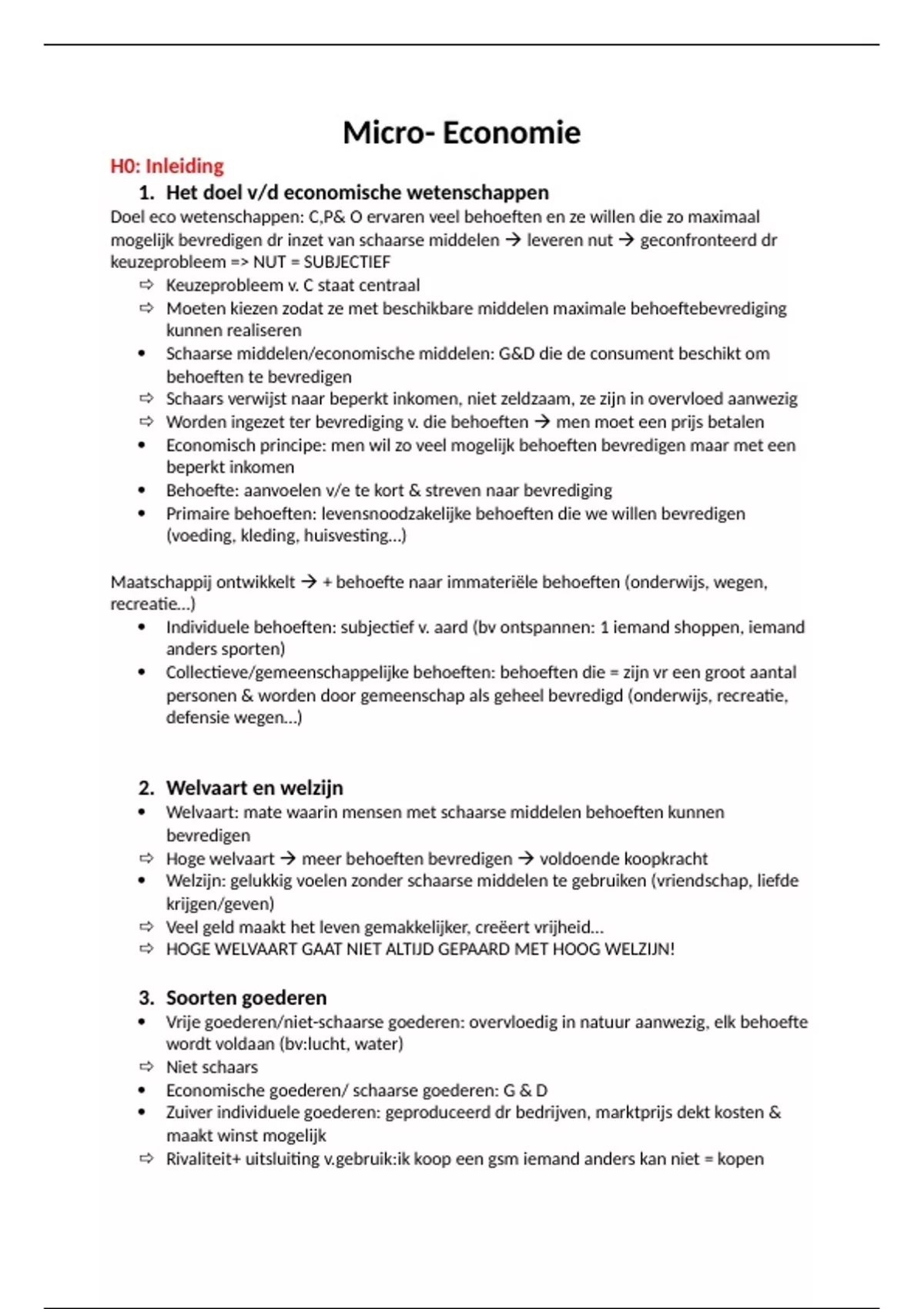 Dit is een volledige samenvatting van de allereerste hoofdstuk van micro-economie (H0)