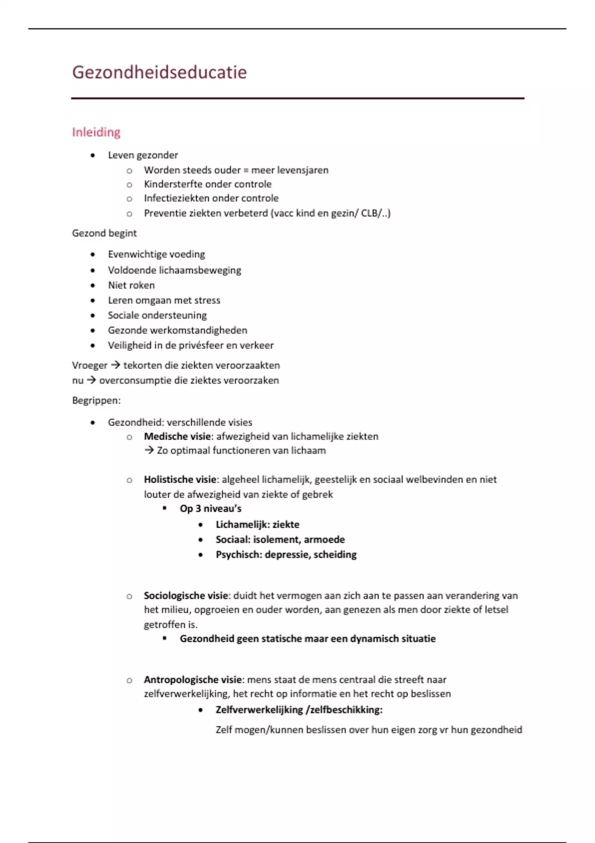 o Holistische visie: algeheel lichamelijk, geestelijk en sociaal welbevinden en niet