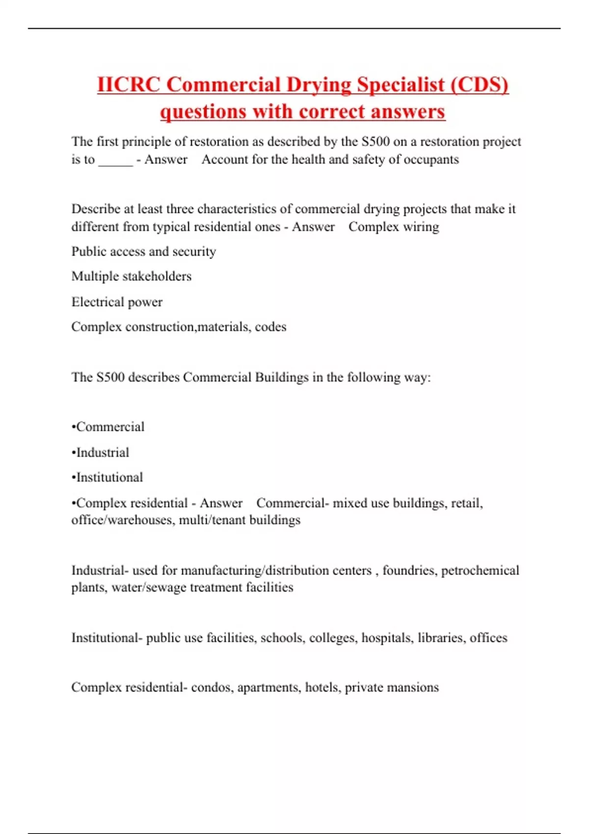 IICRC Commercial Drying Specialist (CDS) questions with correct answers