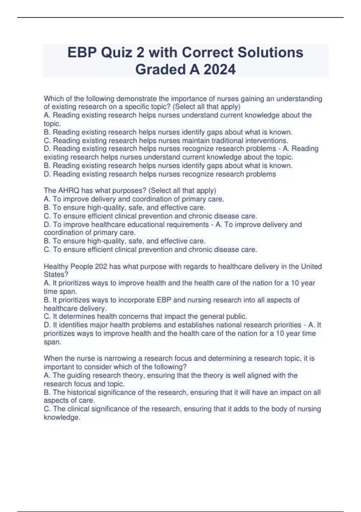 EBP Quiz 2 with Correct Solutions Graded A 2024