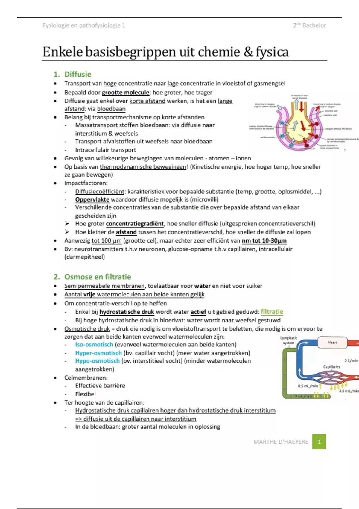 ,Fysiologie en pathofysiologie 1 2de Bachelor