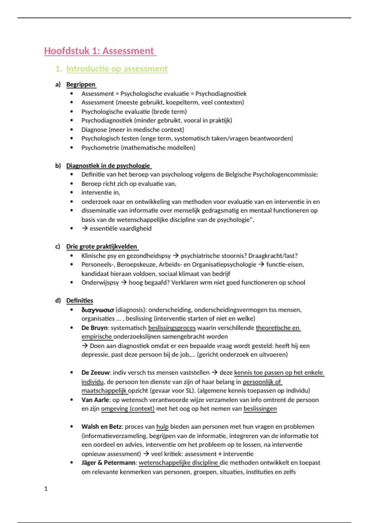 Assessment = Psychologische evaluatie = Psychodiagnostiek