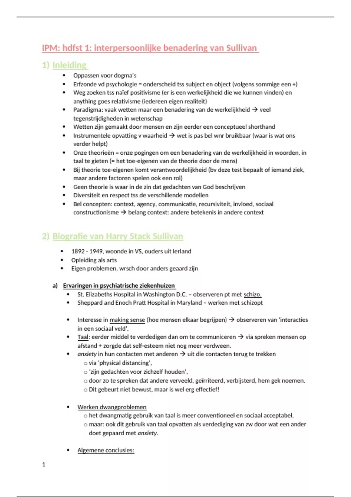 IPM: hdfst 1: interpersoonlijke benadering van Sullivan