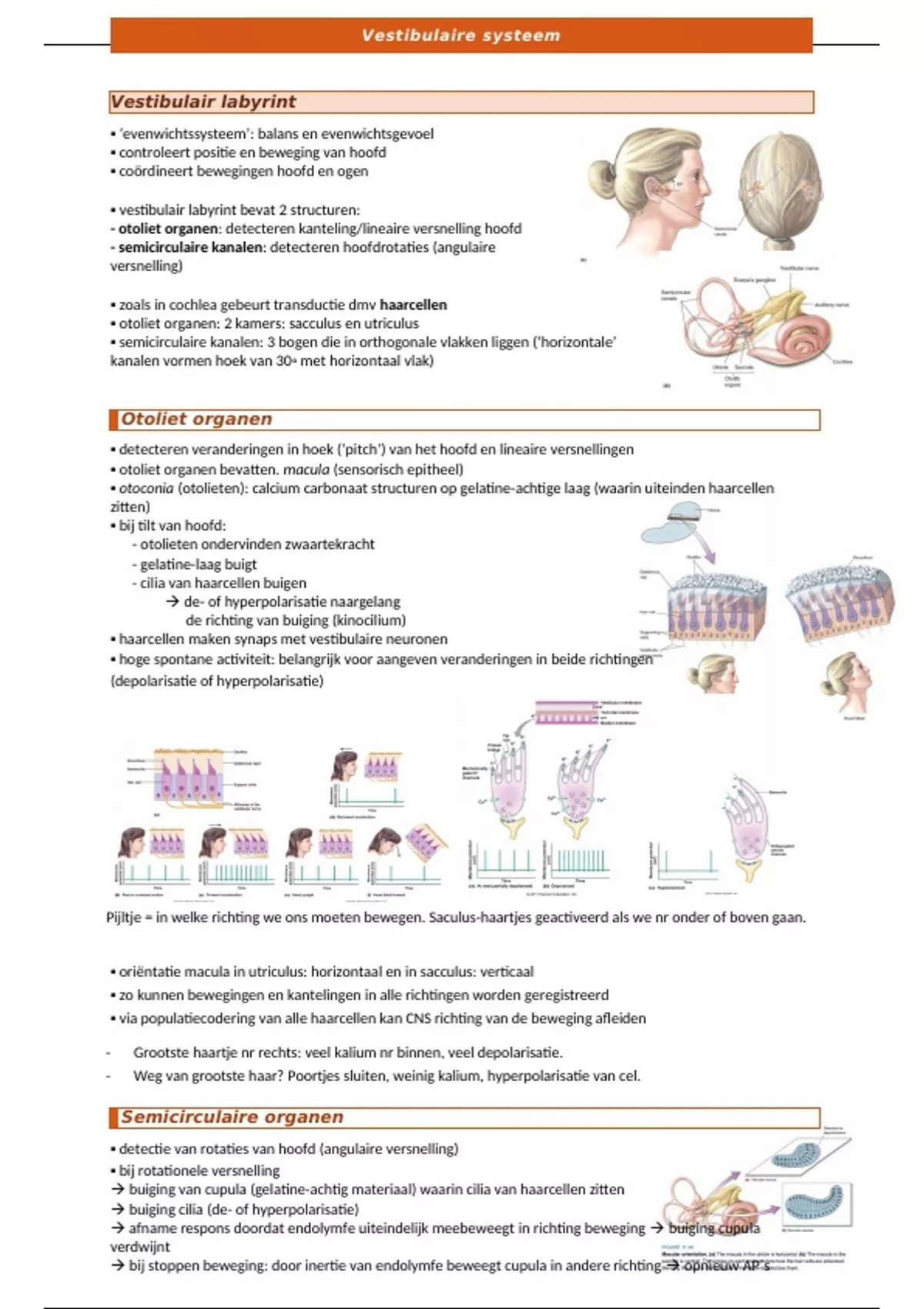 Pijltje = in welke richting we ons moeten bewegen. Saculus-haartjes geactiveerd als we nr onder of boven gaan.