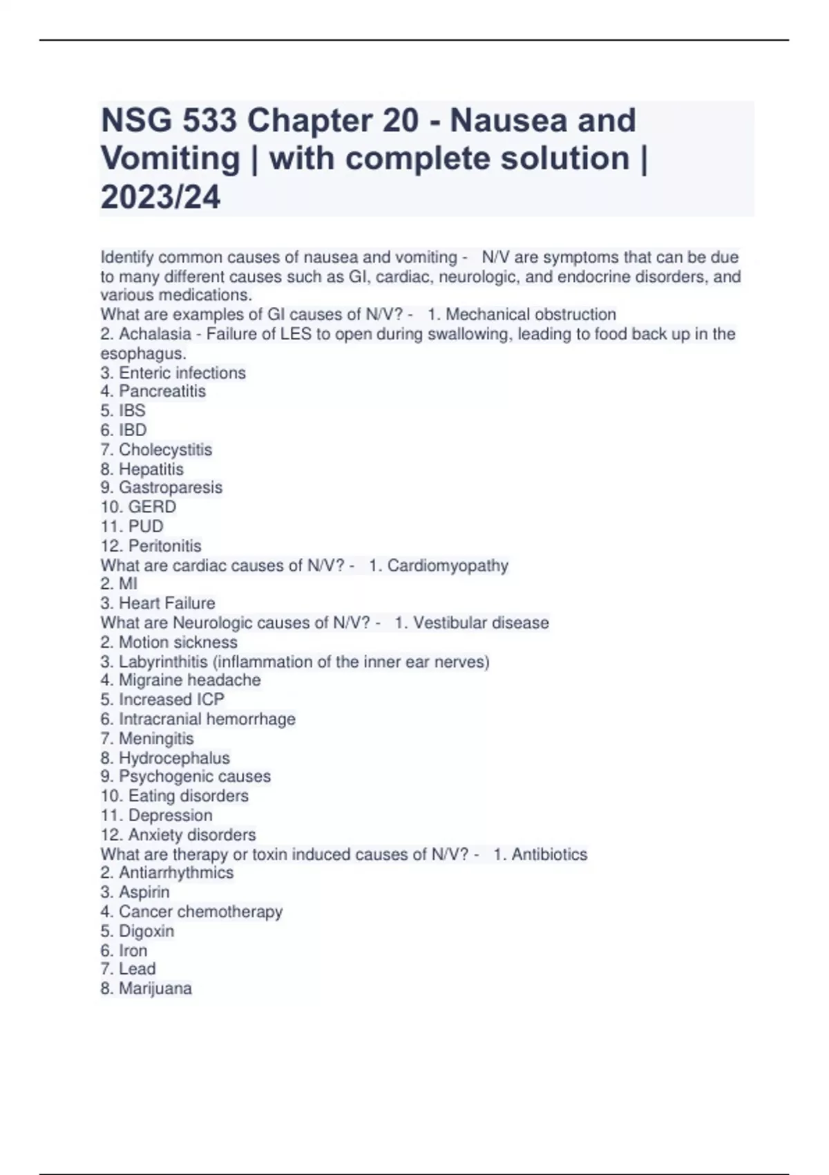 NSG 533 Chapter 20 - Nausea and Vomiting | with complete solution | 2023/24