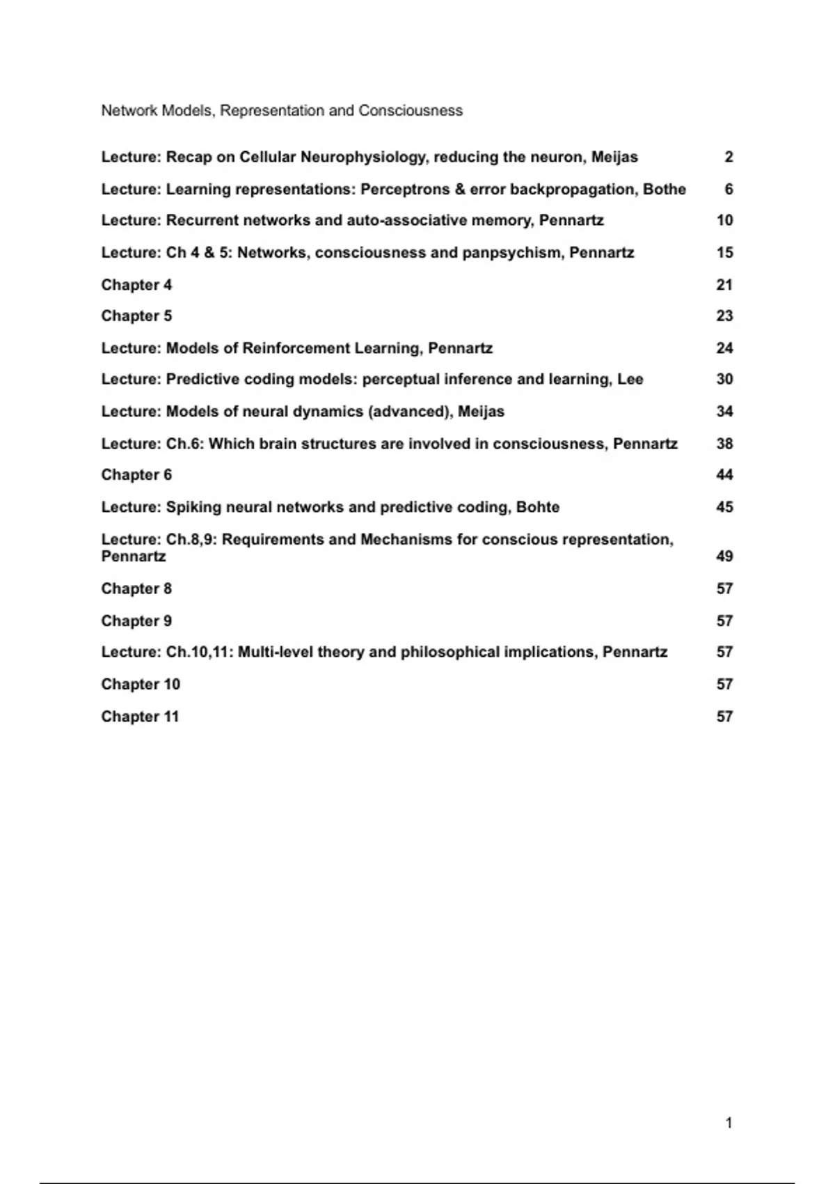 Lecture: Ch 4 & 5: Networks, consciousness and panpsychism, Pennartz 15