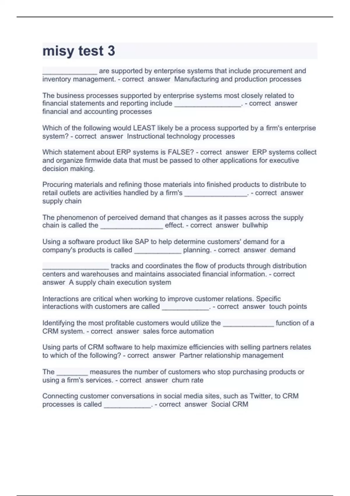 misy test 3 Question and answers 100% correct 2023/2024