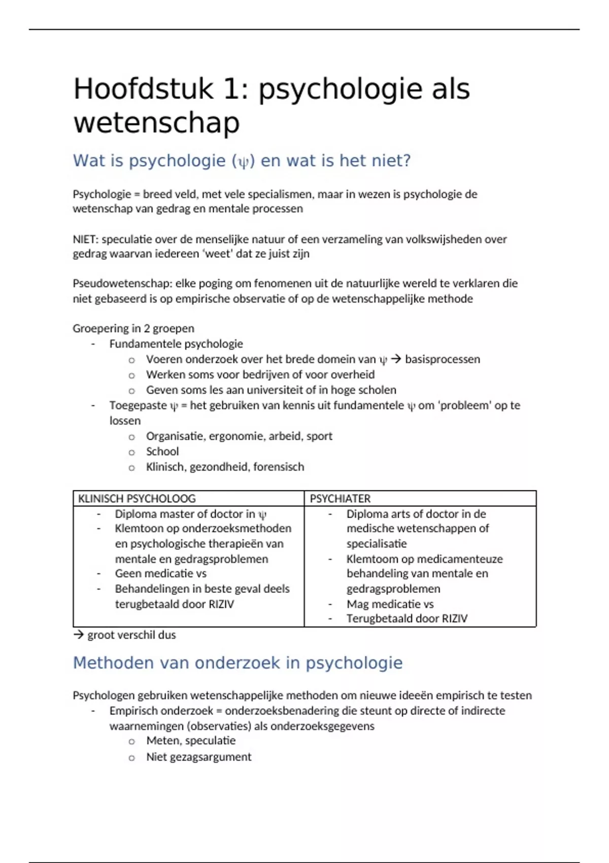 Psychologie = breed veld, met vele specialismen, maar in wezen is psychologie de