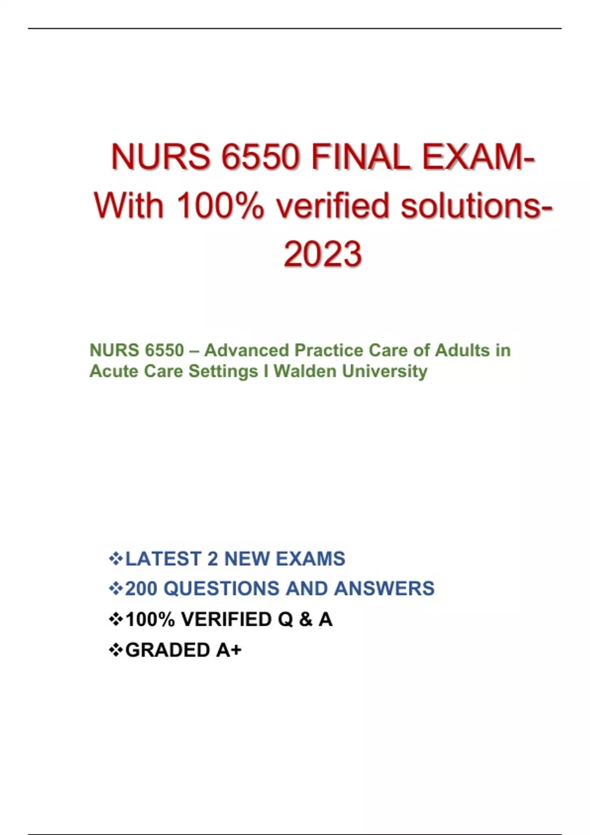 NURS 6550 FINAL EXAM-With 100% verified solutions-2023