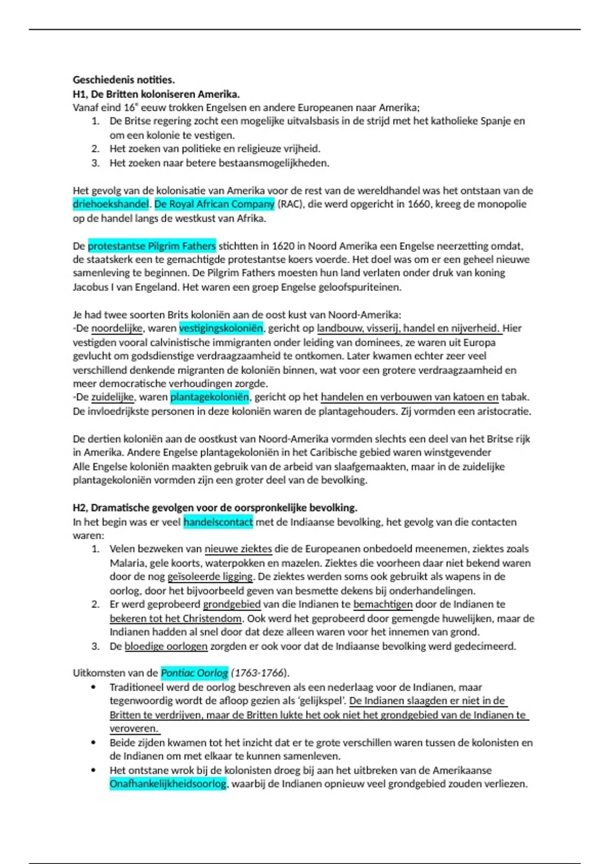 , H3, Engelse kolonisten beginnen de onafhankelijkheidsoorlog.