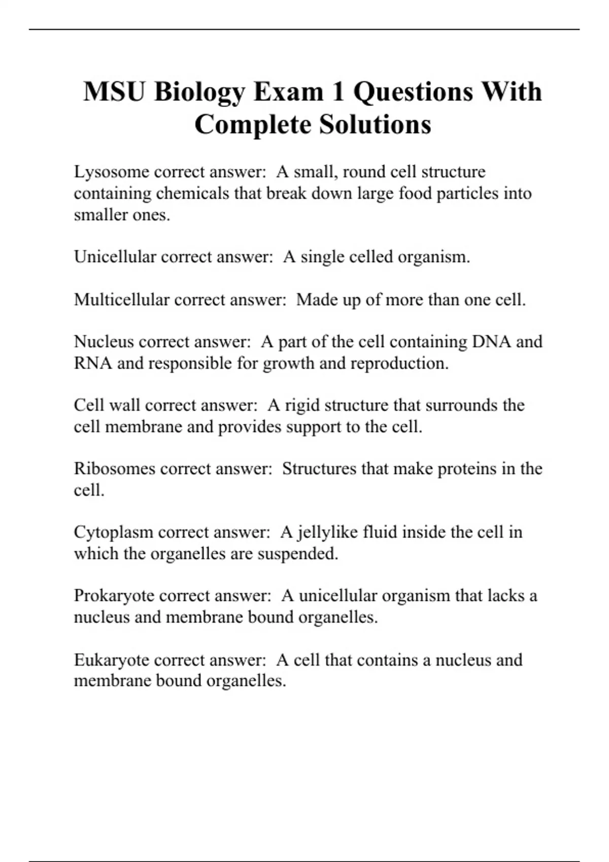 MSU Biology Exam 1 Questions With Complete Solutions