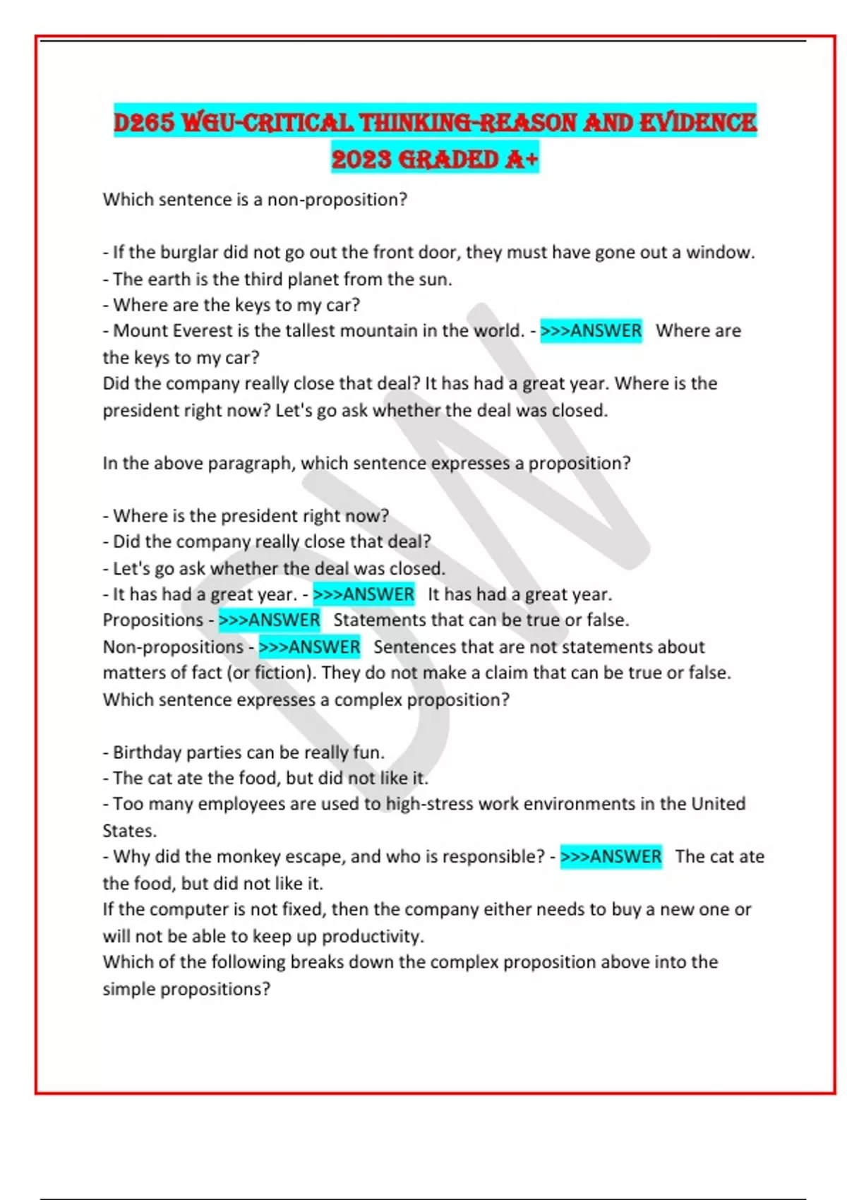 D265 WGU-Critical Thinking-Reason and Evidence 2023 GRADED A+