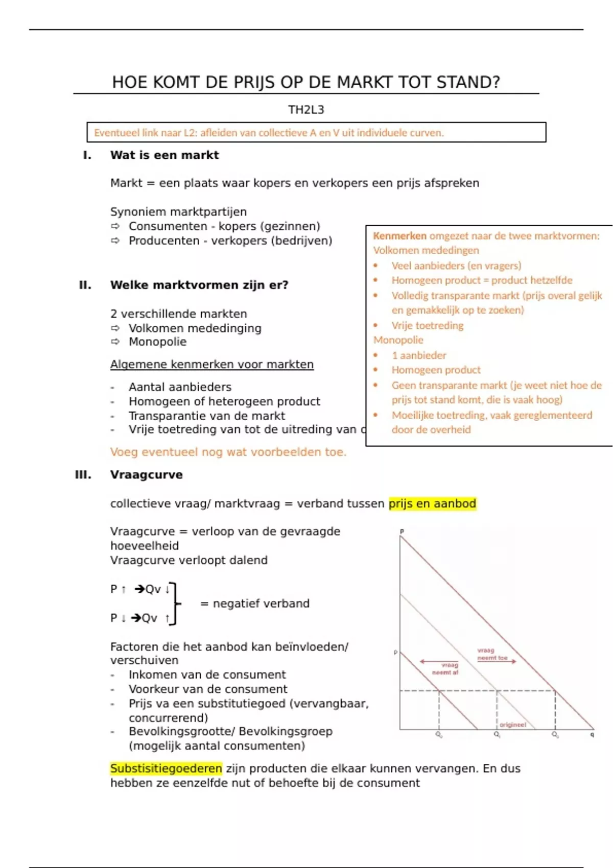 Samenvatting Economie - Thema 2 Level 3 Hoe komt de prijs op de markt