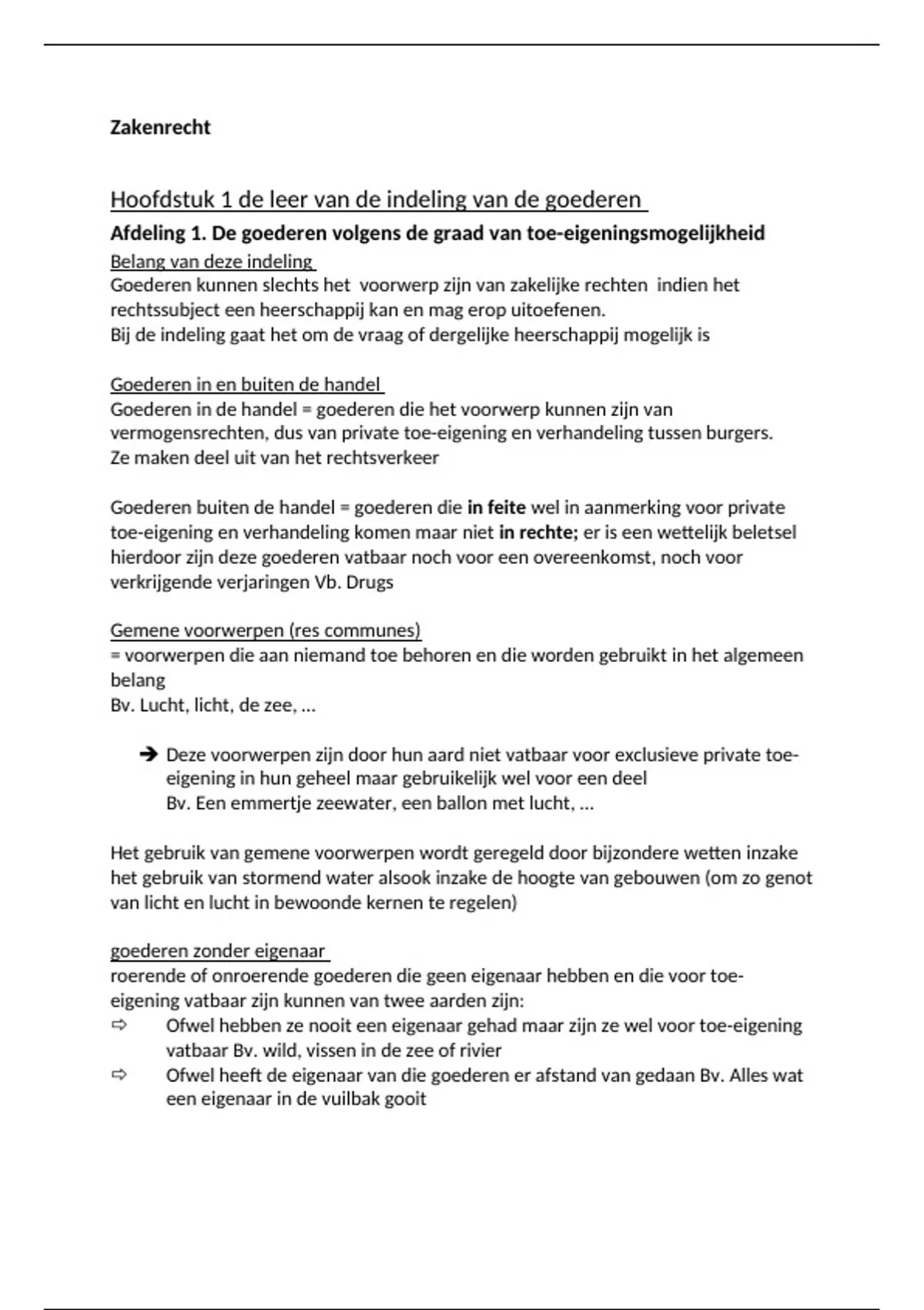 Hoofdstuk 1 de leer van de indeling van de goederen