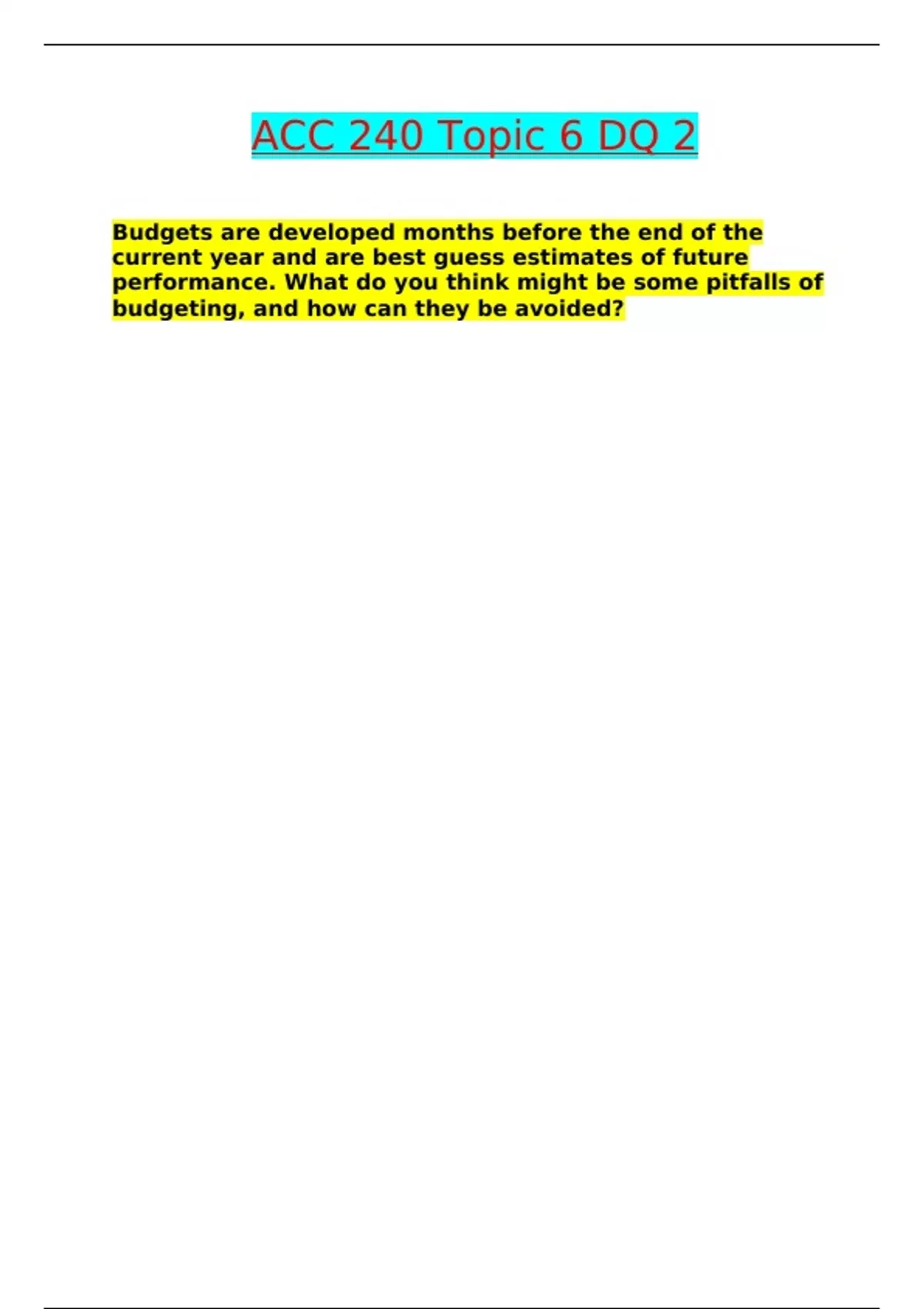 ACC 240 TOPIC 6 DQ 2 CORRECTLY ANSWERED /LATEST UPDATE VERSION/ GRADED A+