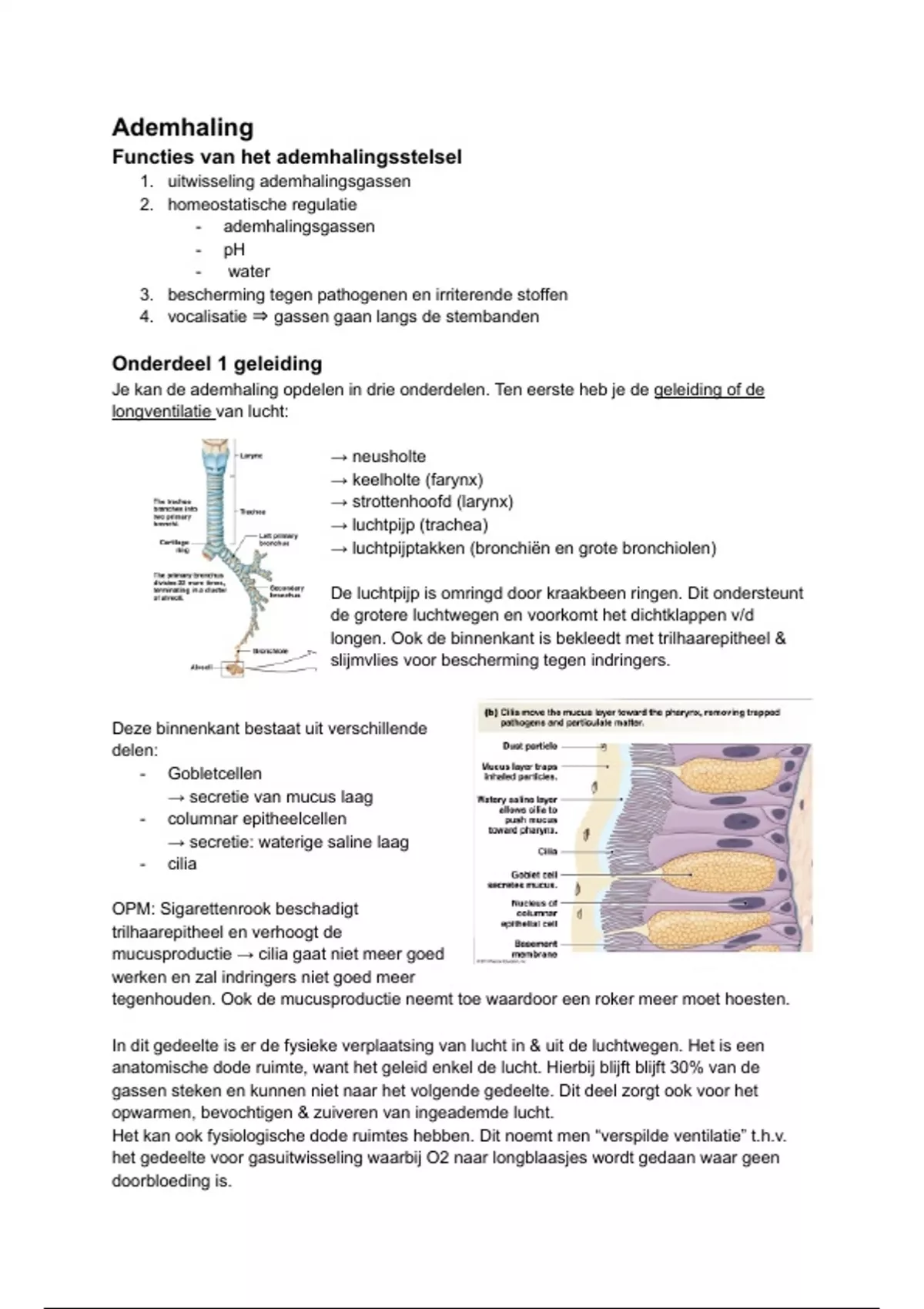 longen. Ook de binnenkant is bekleedt met trilhaarepitheel &