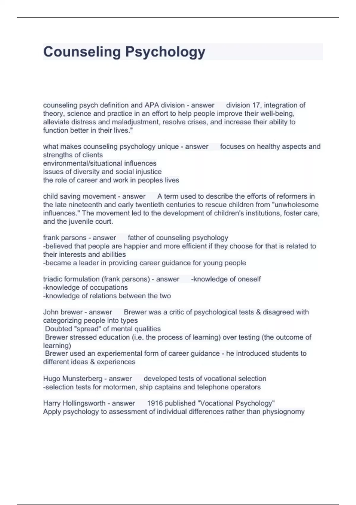 Counseling Psychology Questions and Answers 100% correct 2023