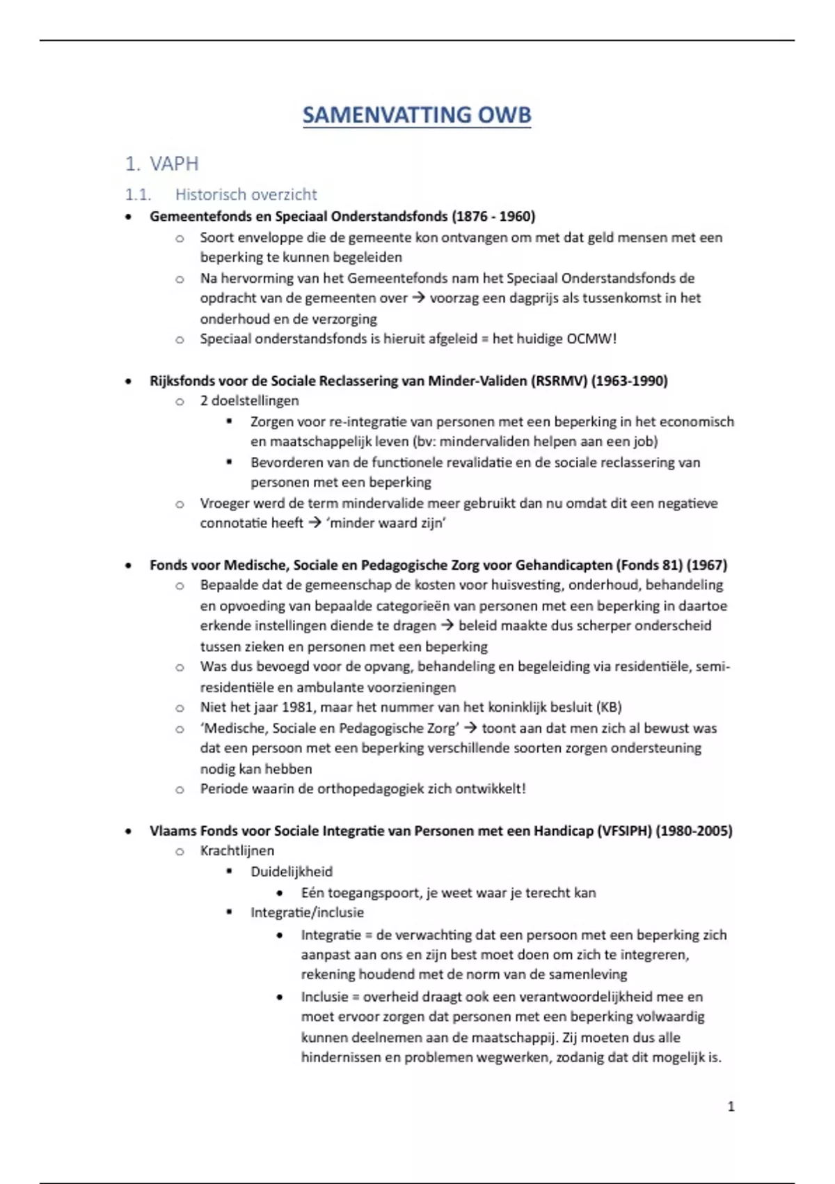 Samenvatting Orthopedagogische Werkvelden en Beleid. Ik had voor het examen een 15/20.
