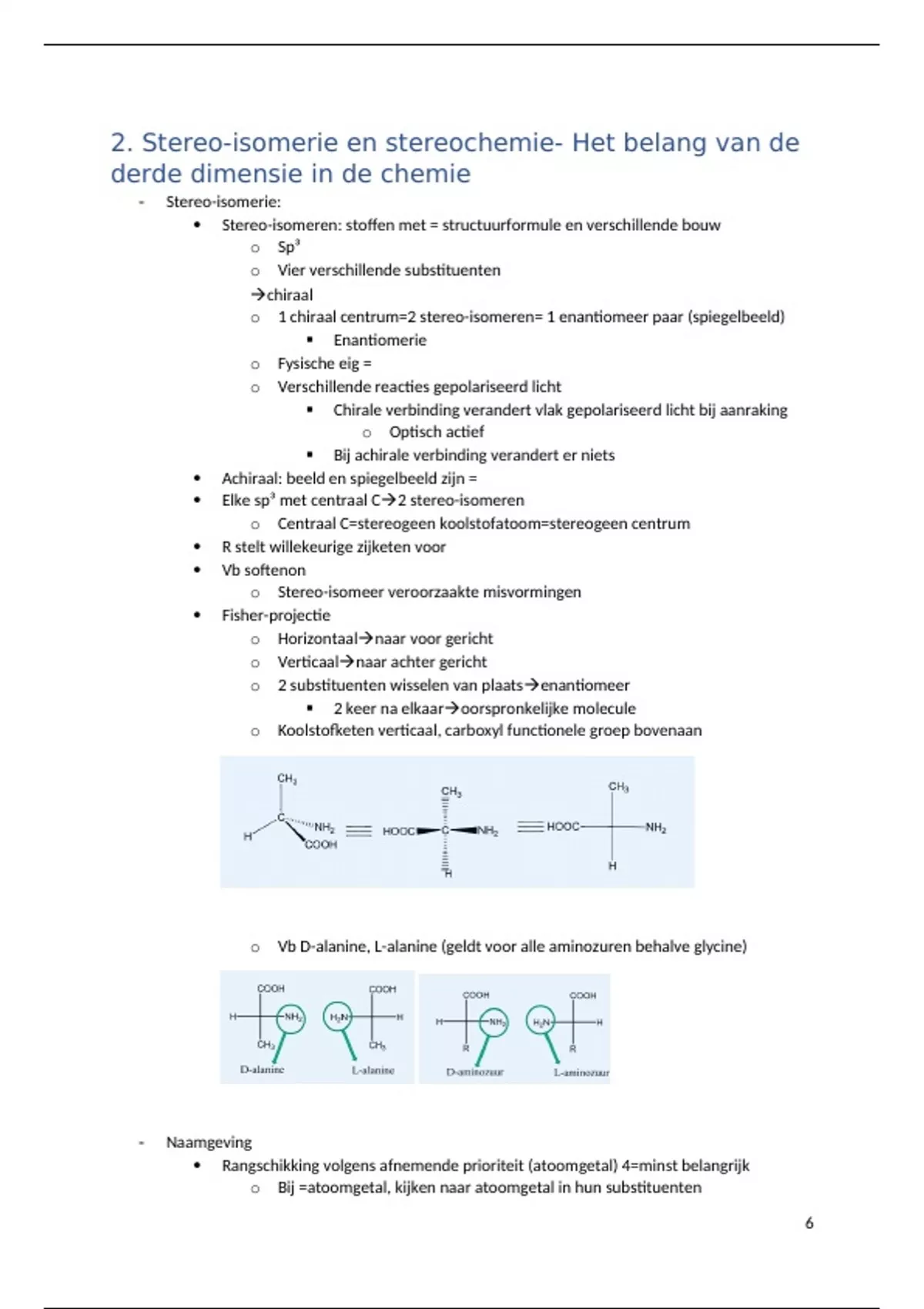 o Vb D-alanine, L-alanine (geldt voor alle aminozuren behalve glycine)