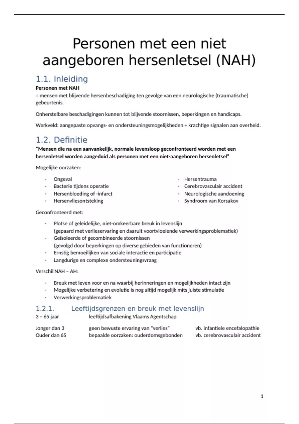 Samenvatting Personen met een niet-aangeboren hersenletsel (NAH) - ODW 1