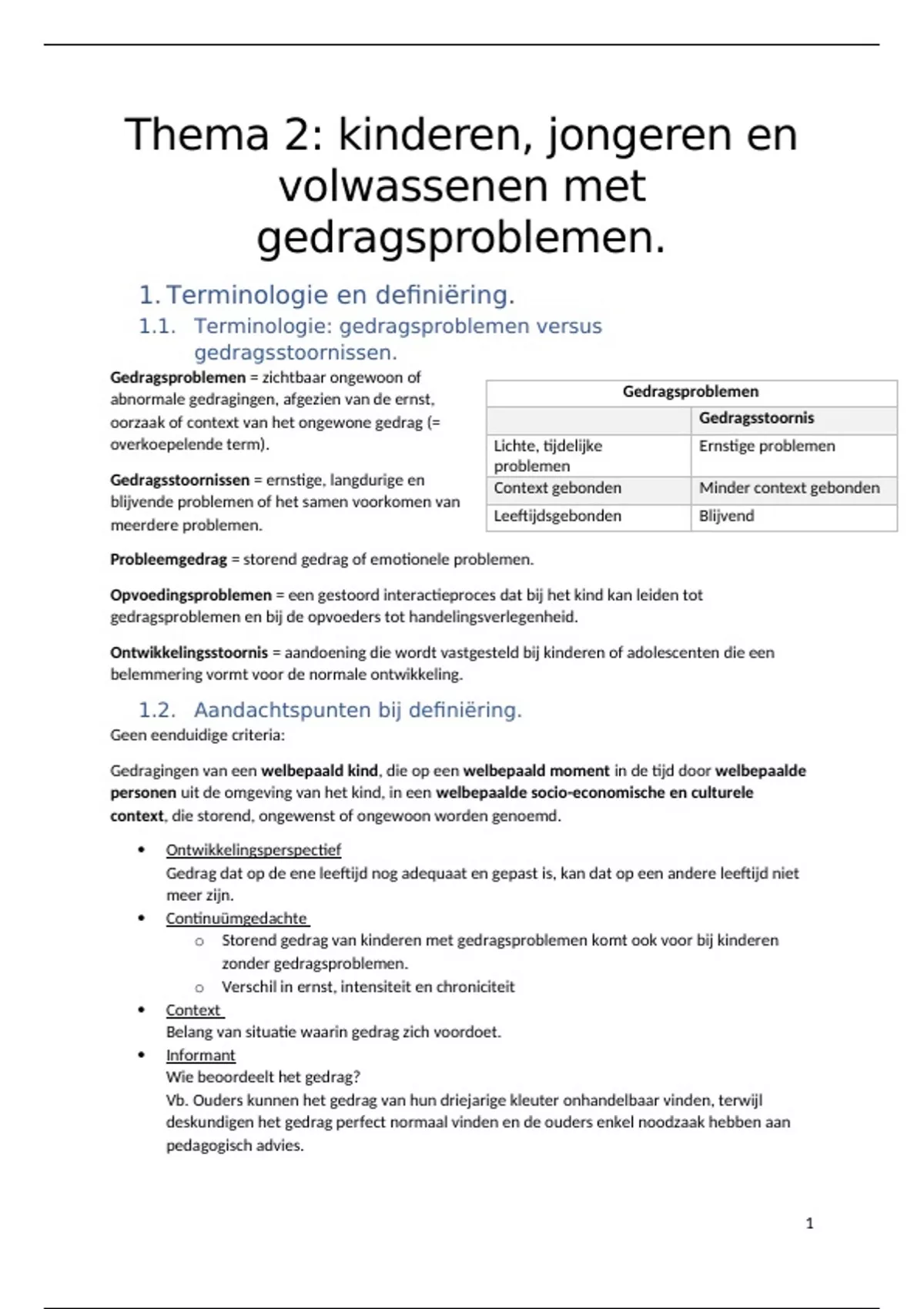 Samenvatting Kinderen, jongeren en volwassenen met gedragsproblemen - ODW 2