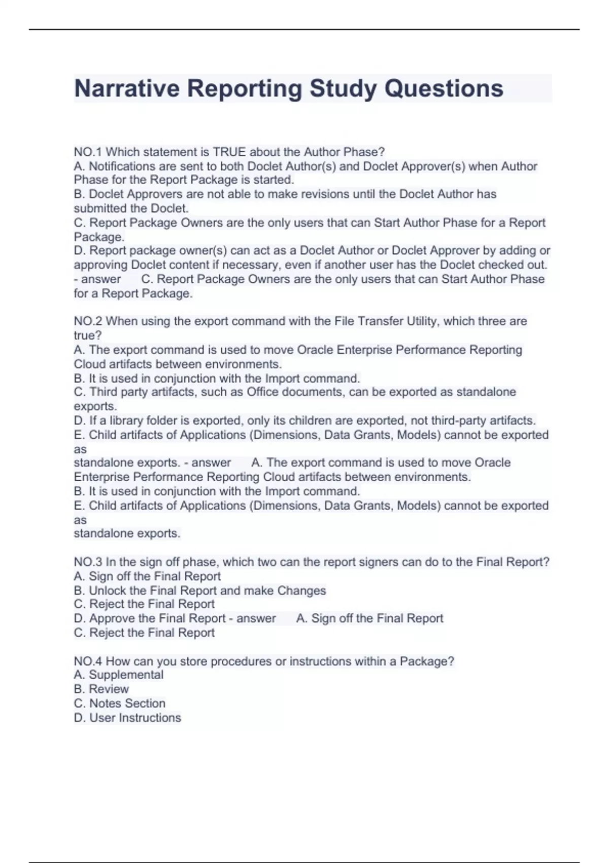 Narrative Reporting Study Questions Questions and Answers Graded A+