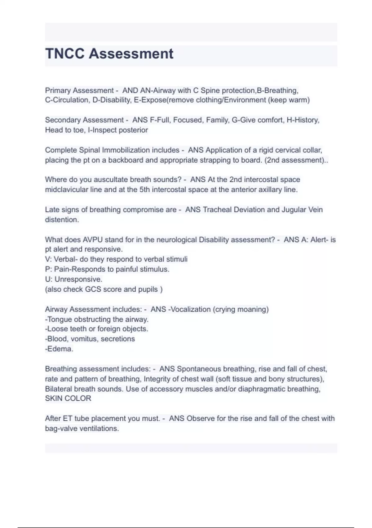 TNCC Assessment Questions with complete solutions 2023/2024( A+ GRADED 100% VERIFIED).