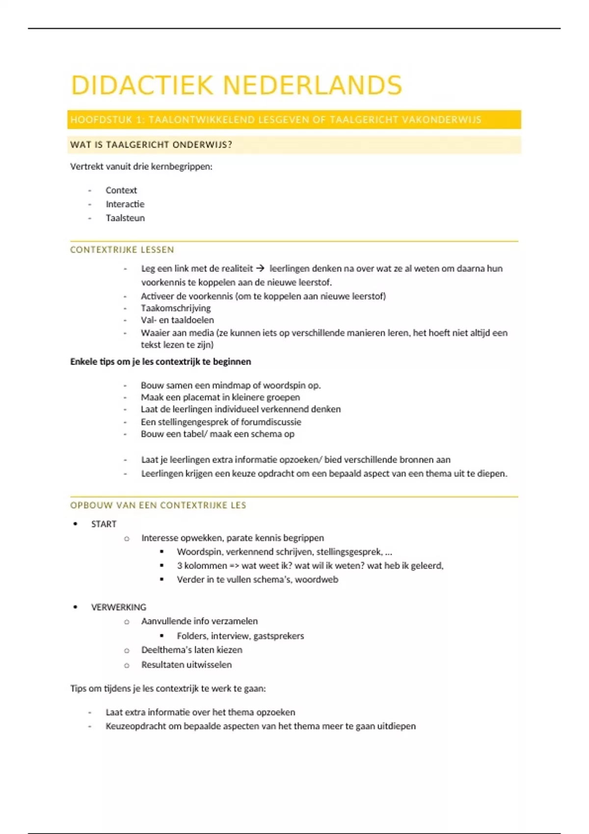 HOOFDSTUK 1: TAALONTWIKKELEND LESGEVEN OF TAALGERICHT VAKONDERWIJS