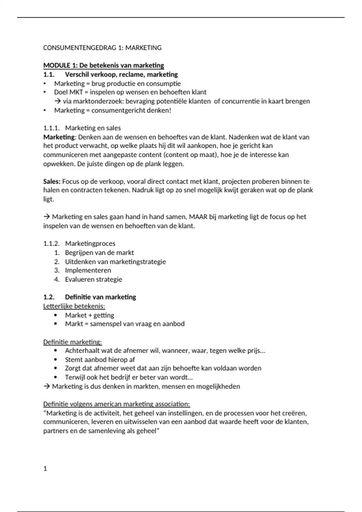 MODULE 1: De betekenis van marketing