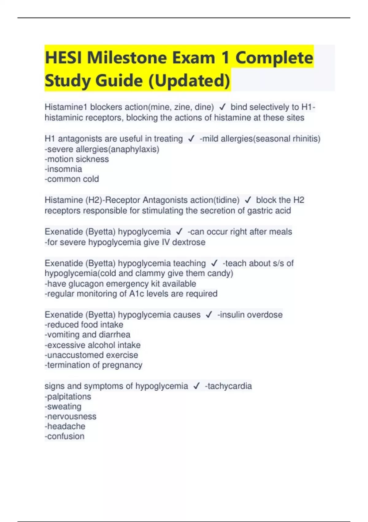HESI Milestone Exam 1 Complete Study Guide (Updated) | Latest 2023/2024