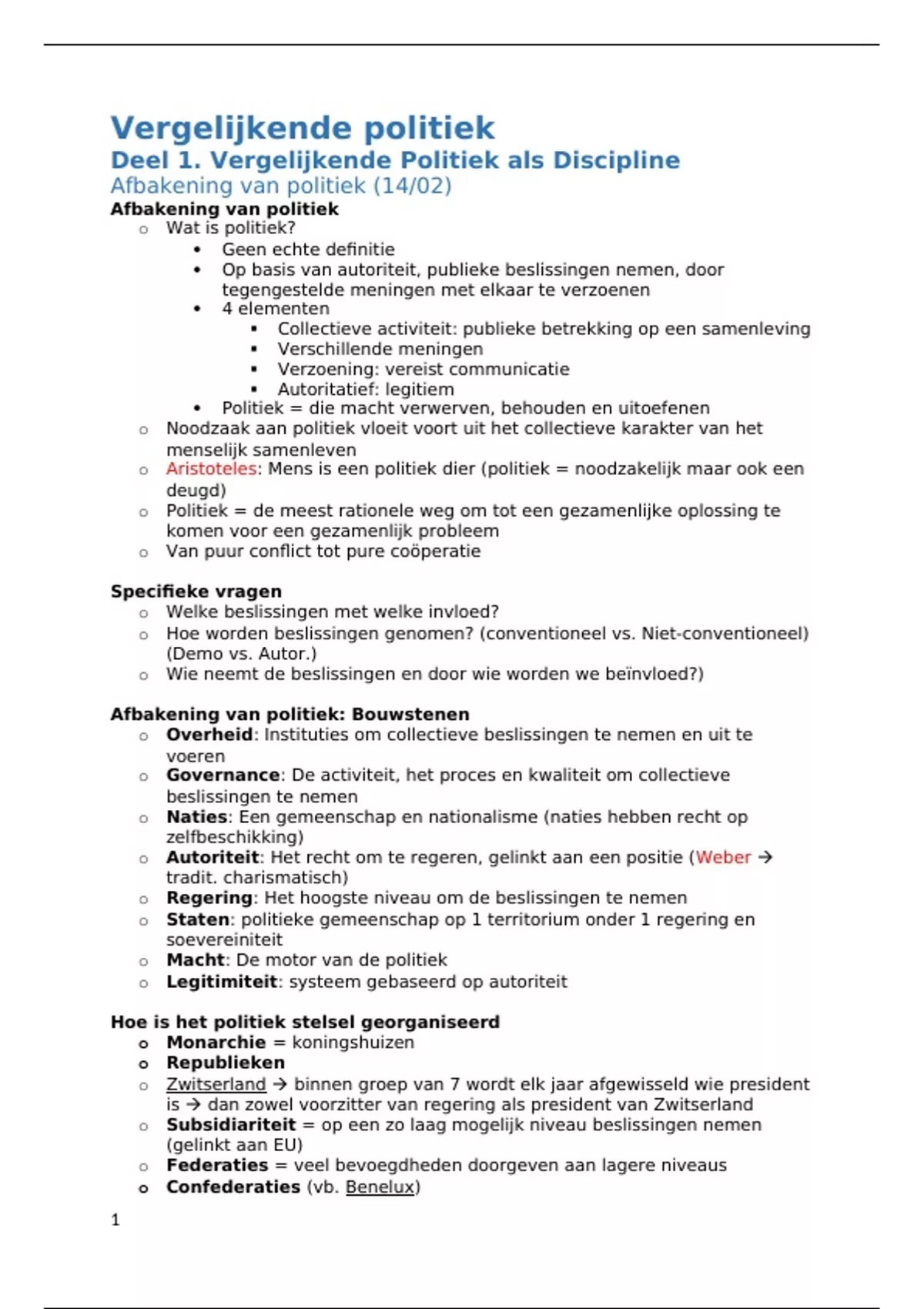 Samenvatting Vergelijkende Politiek KULeuven - 2022/2023