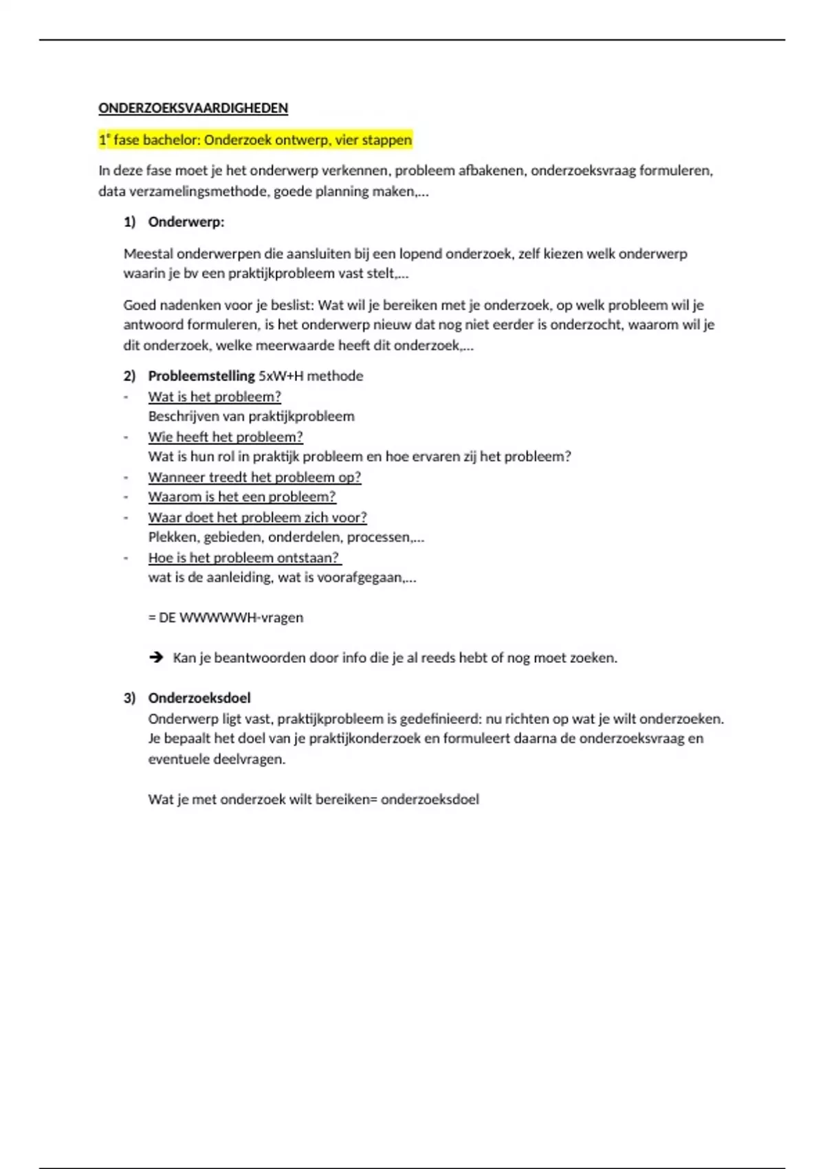 1e fase bachelor: Onderzoek ontwerp, vier stappen